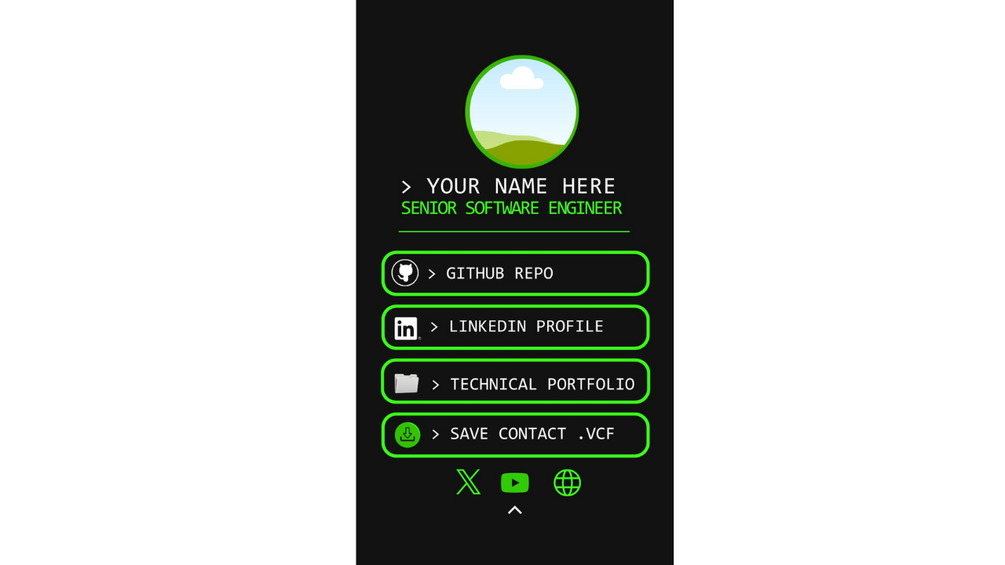 In a world of generic Linktree pages, stand out with the "Technical Mono" aesthetic. This template is designed to mimic a clean terminal/code-editor interface, signaling your expertise the second a recruiter or founder scans your card.
